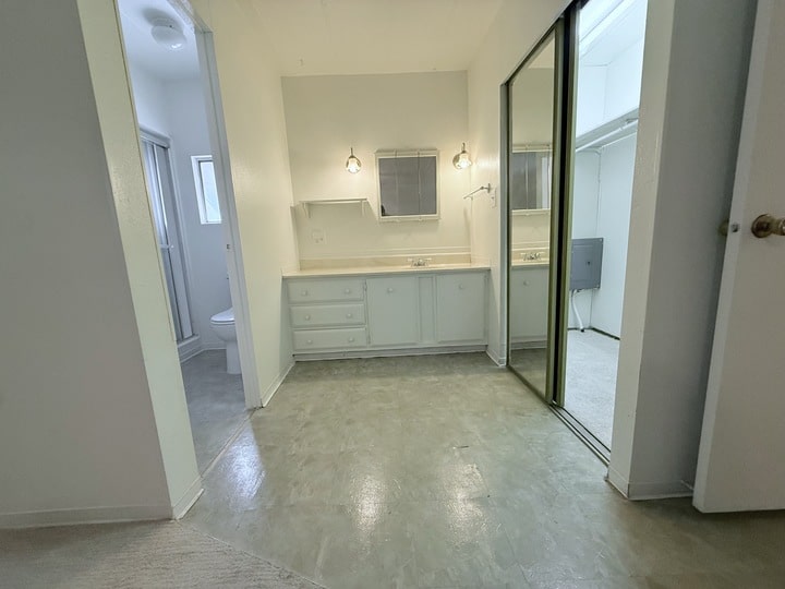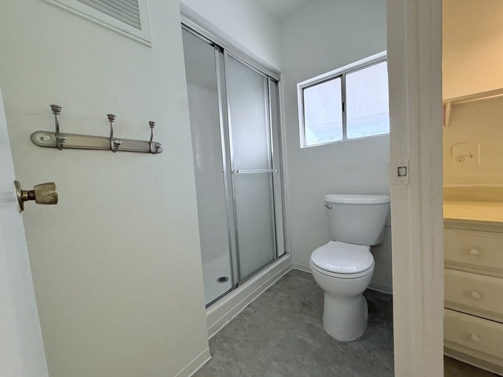 The primary bedroom suite features a private bathroom and a generously sized closet providing plenty of storage. A second bedroom and full bathroom offer flexibility for guests a home office or hobbies.